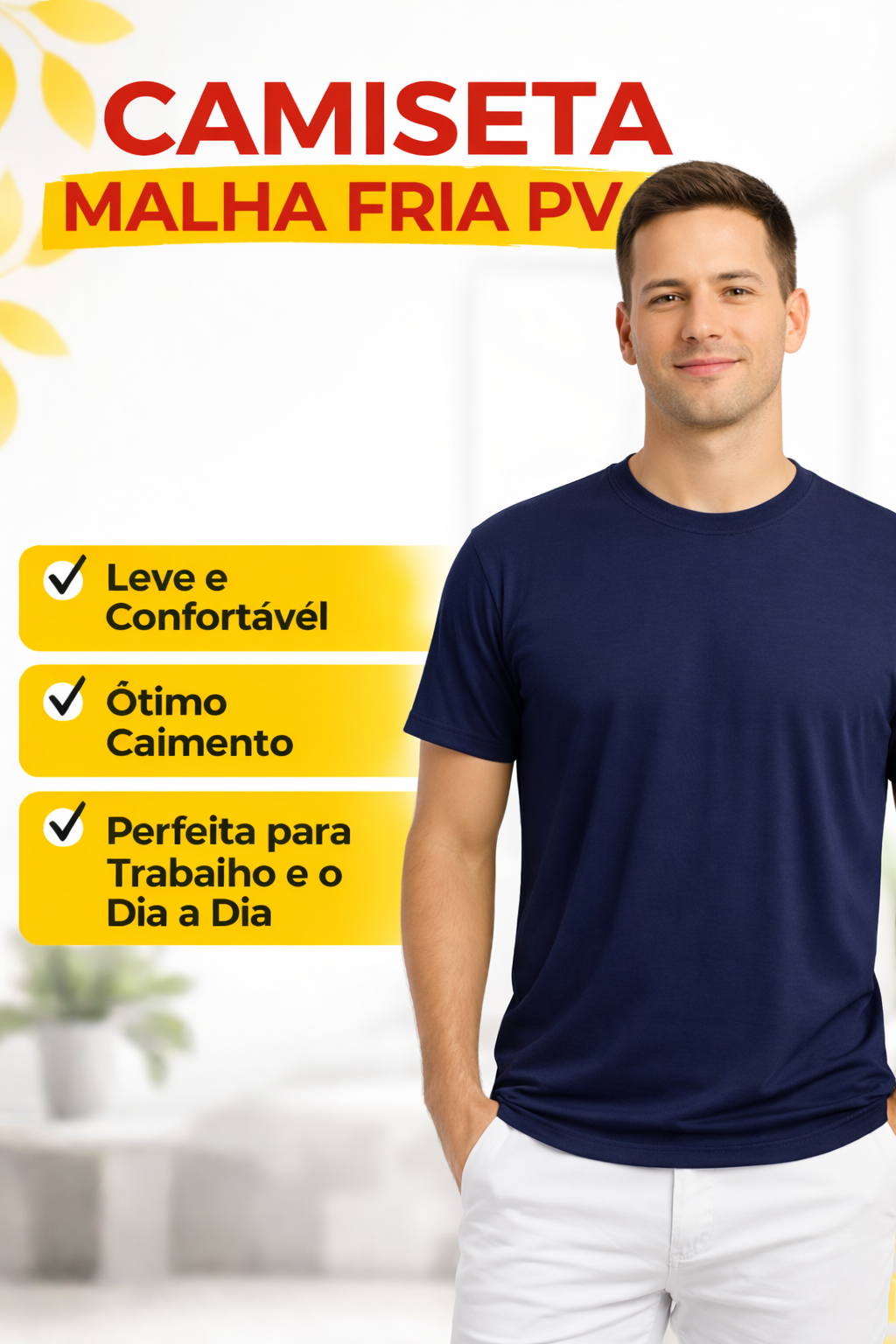 Balcões de RetiradaA Camiseta Malha Fria PV Lisa é ideal para quem busca leveza, conforto e resistência no dia a dia. Muito utilizada para trabalho, uniforme de empresa, eventos e uso casual, ela tem ótimo caimento e proporciona mais conforto, principalmente em dias quentes.